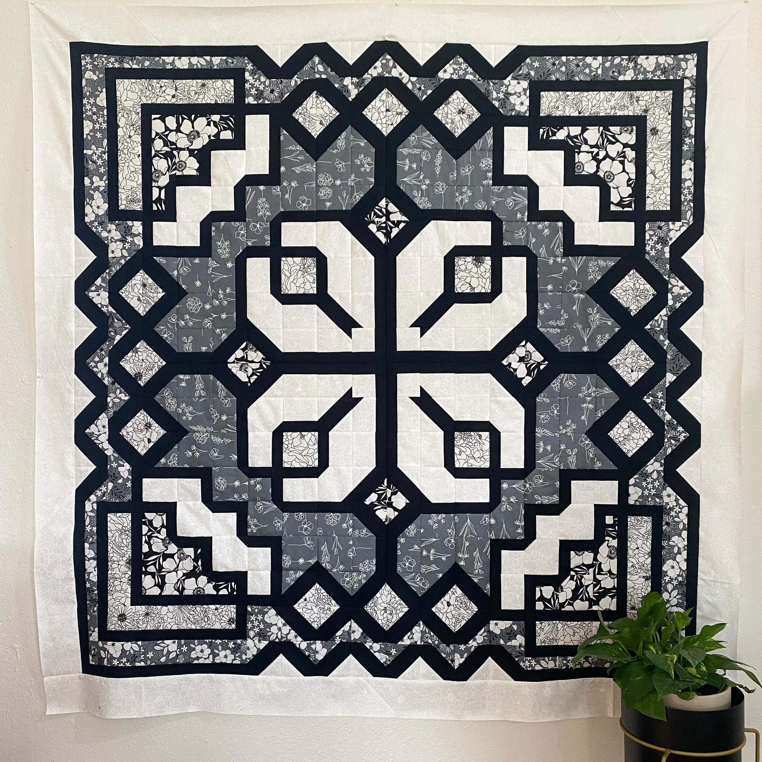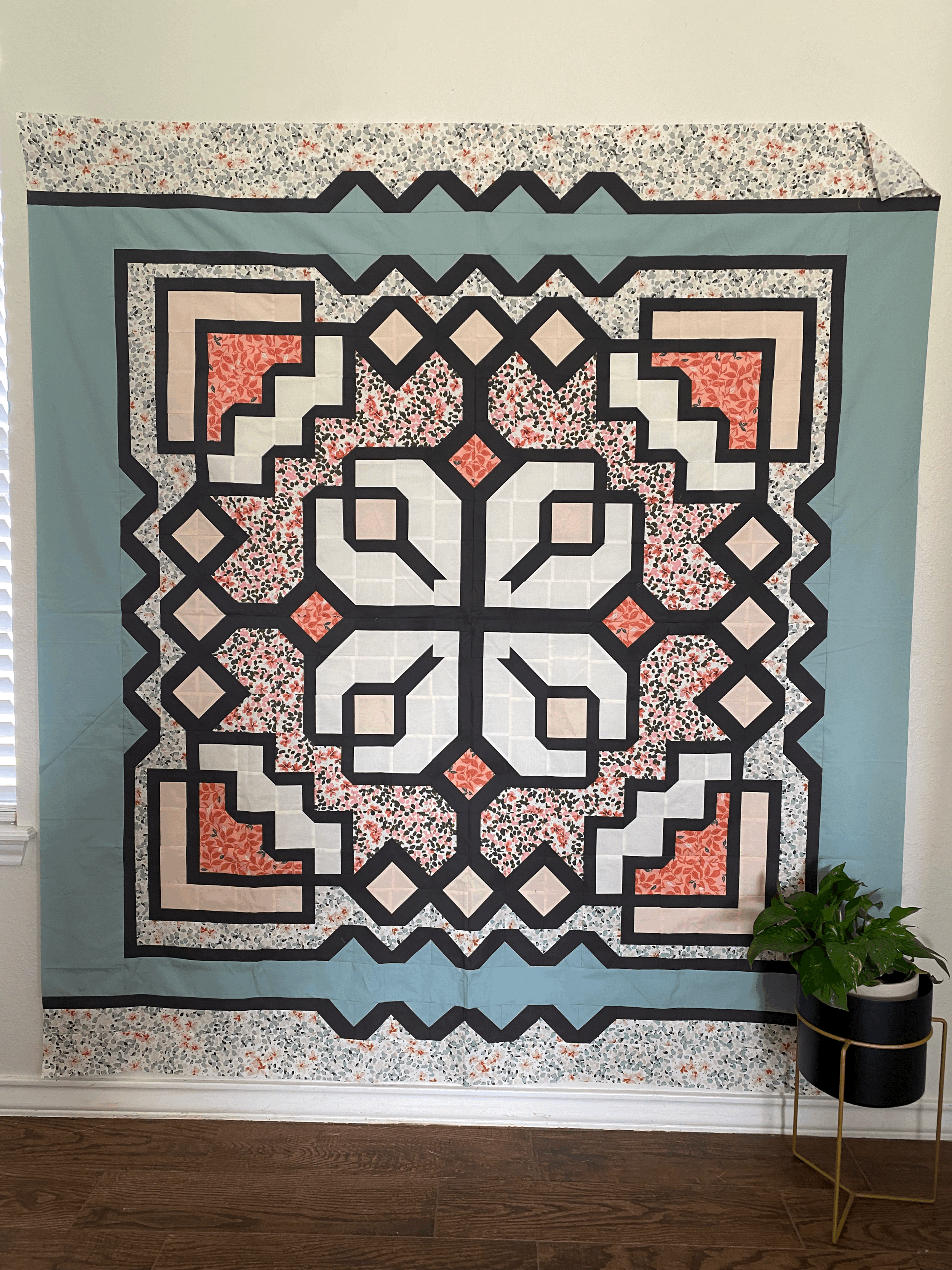 If you are wanting to make a Dahlia Blooms quilt using the same fabrics that I have used, you can find all the fabrics listed below their quilt. Reference the Dahlia Blooms pattern for exact fabric requirements.