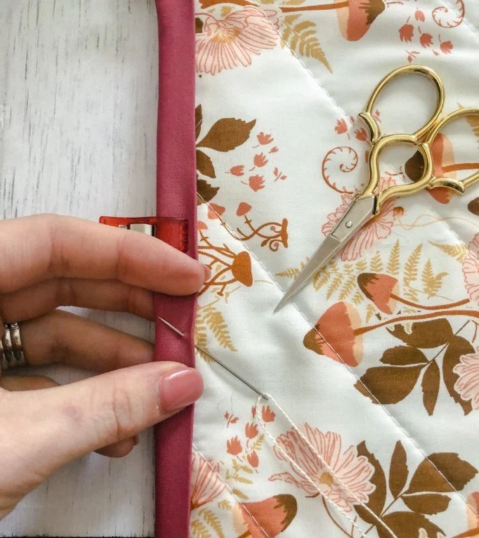 First things first, you will need to have your binding sewed onto your quilt top. If you are like me and still hold your breath when it comes time to join the ends of your binding strips, here is the YouTube video I use every time (really, every single time) I finish a quilt. (https://www.youtube.com/watch?v=P1srfubwAIQ) Once the binding is on, I always press the binding down with my iron. If you haven’t done this before, it makes such a difference in getting your binding to lay flat.